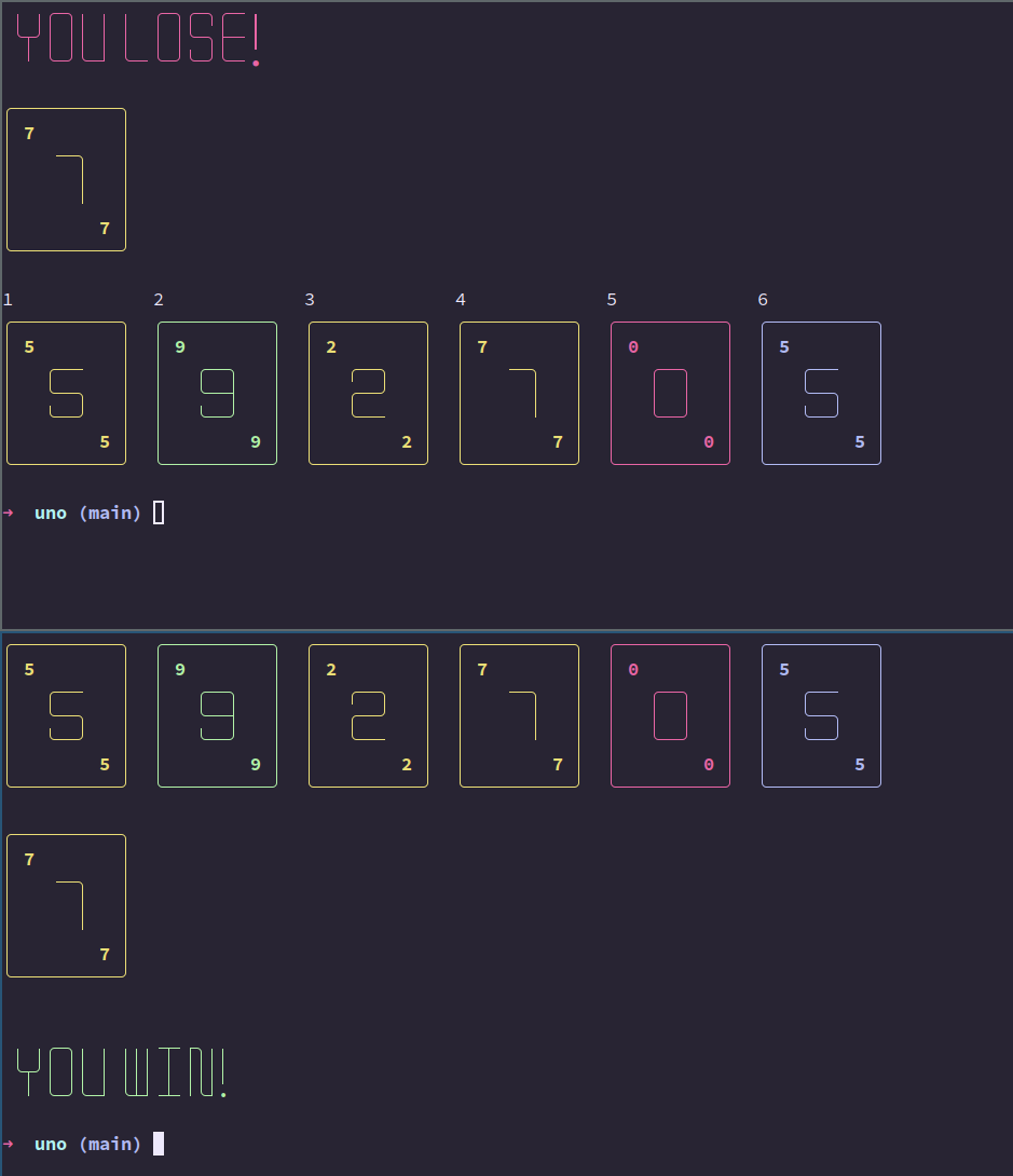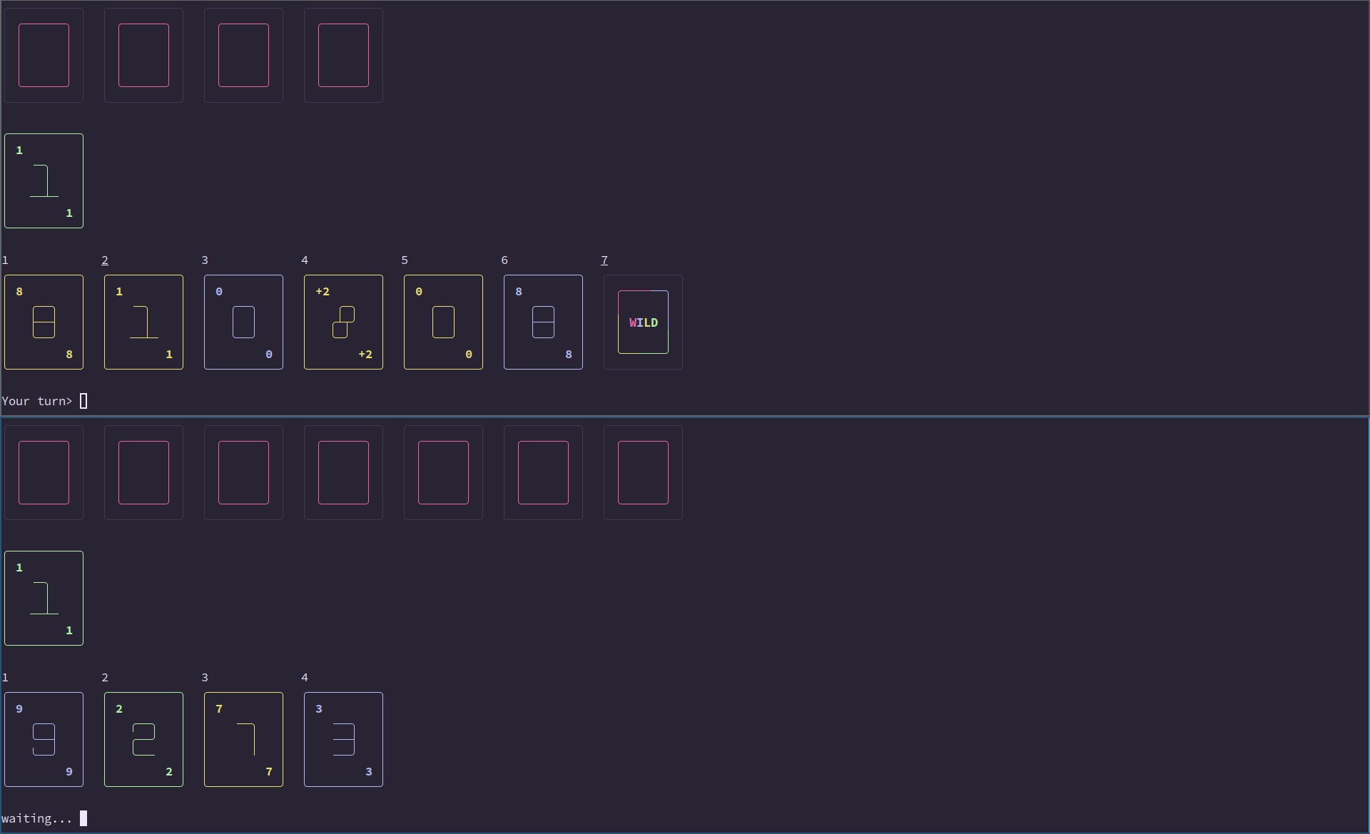 designed for use in the terminal, but i have a web version with very shotty js at https://uno.tilley.lol
